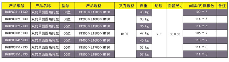 CC型—雙向單面圓角鋼托盤 產(chǎn)品用途:主要為袋裝的軟包裝大批量物品存儲和周轉(zhuǎn)。改變老式四個(gè)尖角焊接,采用圓角工藝,主要防止麻袋在放置時(shí)不容易刮破。